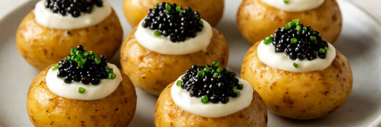 Un aperitivo cálido, elegante y muy fácil de preparar. La combinación de la patata tierna con la crema fresca y el toque salino del caviar crea un contraste espectacular. Ingredientes (para 12 unidades) 12 patatas baby (pequeñas) 2 cucharadas de aceite de oliva Sal fina 120 g de crème fraîche o queso crema ligero 1 […]