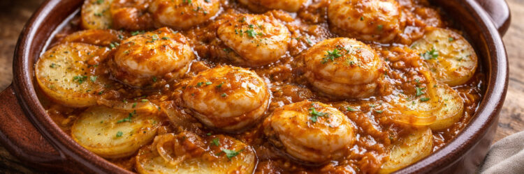 Zamburiñas en salsa vieira con patatas panaderas