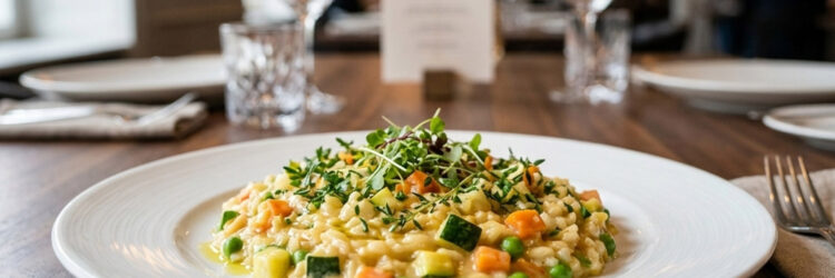 Risotto de verduras cremoso con caldo de verdura en polvo