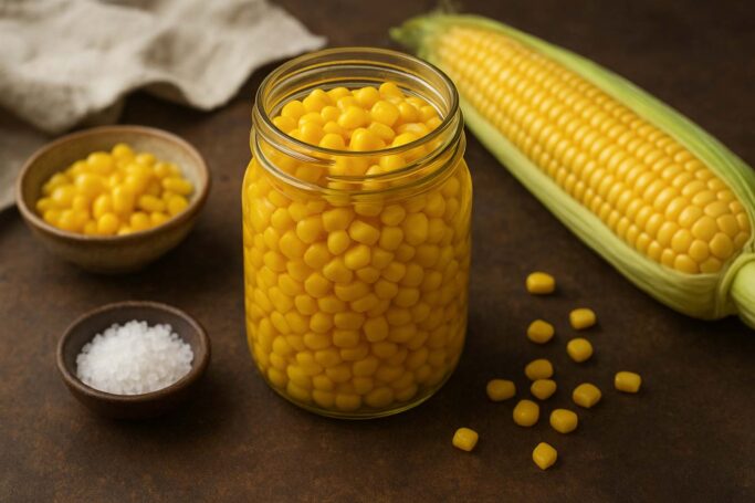 El maíz dulce —una variedad distinta al maíz de grano seco— se recolecta joven, cuando los granos son tiernos y dulces. En su versión en conserva, se cocina brevemente y se sella al vacío para mantener su textura jugosa y su color dorado.